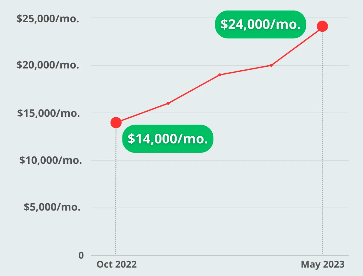 Results: By May 2023, On Season Meals' monthly revenue increased to $24k, reflecting a 71.43% increase over 8 months.